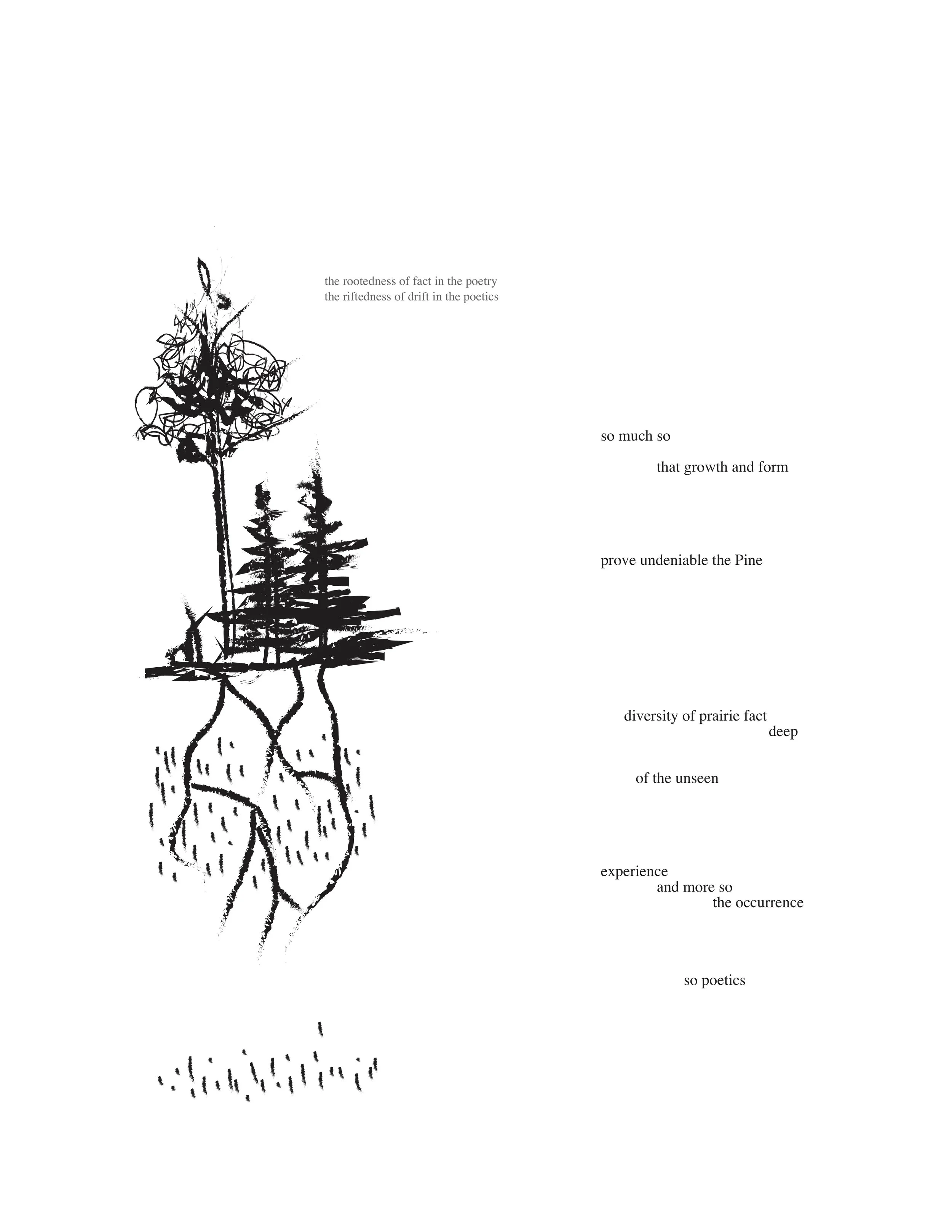 In conjunction with composition of the book, these prints were letterpressed on a Vandercook #219, at the Minnesota Center for the Book Arts. The print collages also incorporate color inkjet versions of the Potsdam stone sample collected near the Wisconsin Dells, ca. 1900. These prints were made with the assistance and encouragement of Further Other Book Works, who continue to promote poetry, poetics, literary community, and material print culture.